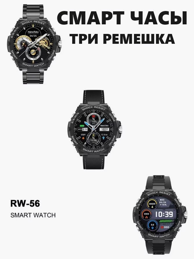Часы умные HainoTeko RW-56 три ремешка черный: сравнение цен, характеристики, фото, актуальное наличие и цены.