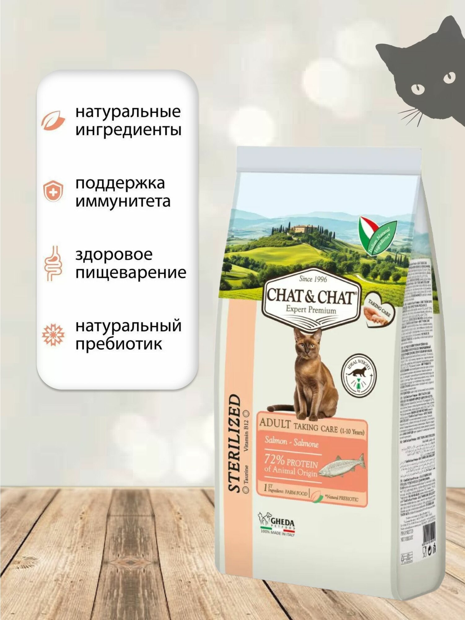 Купить Chat&Chat сухой корм для взрослых стерилизованных кошек с лососем 14кг с доставкой по всей России.