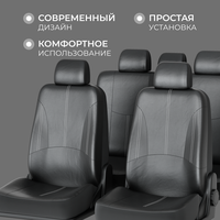 Универсальный авто чехлы представлены в комплекте на весь салон, набор. Защитные автомобильные чехлы и накладки из экокожи сохранят поверхность сидений и конструктивных элементов автомобиля от царапин, потертостей и загрязнений. Наши накладки в приятном минималистичном декоре позволят обновить интерьер в машине быстро и не затратно. Комплект универсальный и подходит для любой марки автомобиля. Износостойкий материал состоит из многослойного покрытия: толщина экокожи 0.8 мм, толщина наполнителя - поролона 3 мм, спинка основы из спандекса.