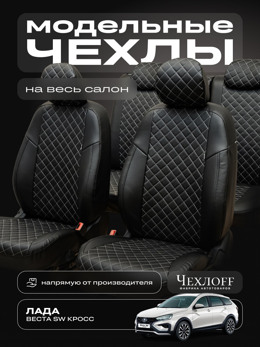 Чехлы ЧехлоFF для Vesta Веста SW Cross, экокожа, чёрно-белый, передние/задние, комплект: сравнение цен, характеристики, фото, актуальное наличие и цены.
