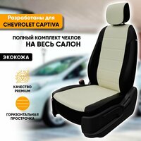 Чехлы для автомобильных сидений Chevrolet Captiva / Шевроле Каптива (2006-2018) из экокожи, цвет черный + белый, задняя спинка раздельная 40/60 (комплект авточехлов на весь салон)