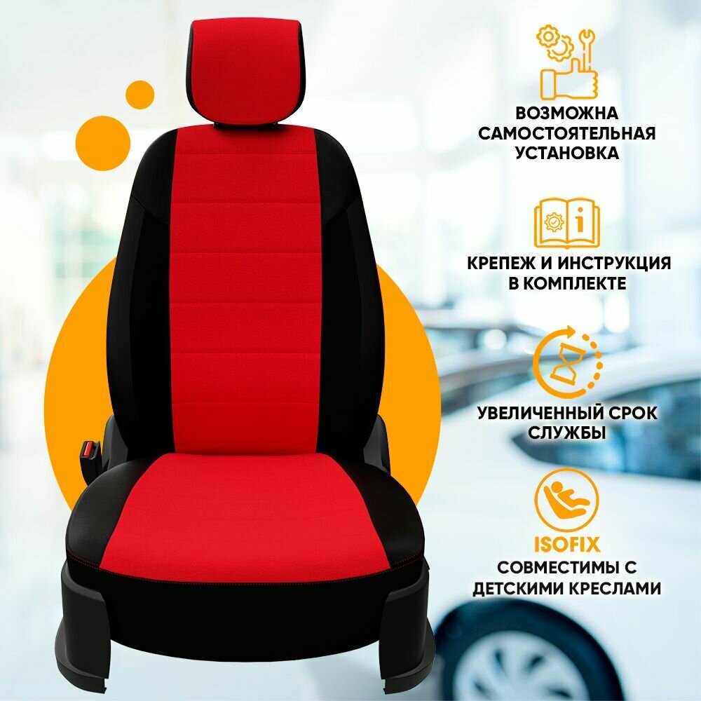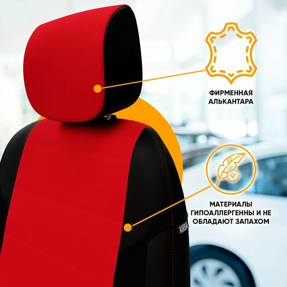 Чехлы для автомобильных сидений Hyundai Solaris 1 / Хендай Солярис 1 (2010-2017) седан из алькантары, цвет черный + красный, задняя спинка раздельная 40/60 (комплект авточехлов)