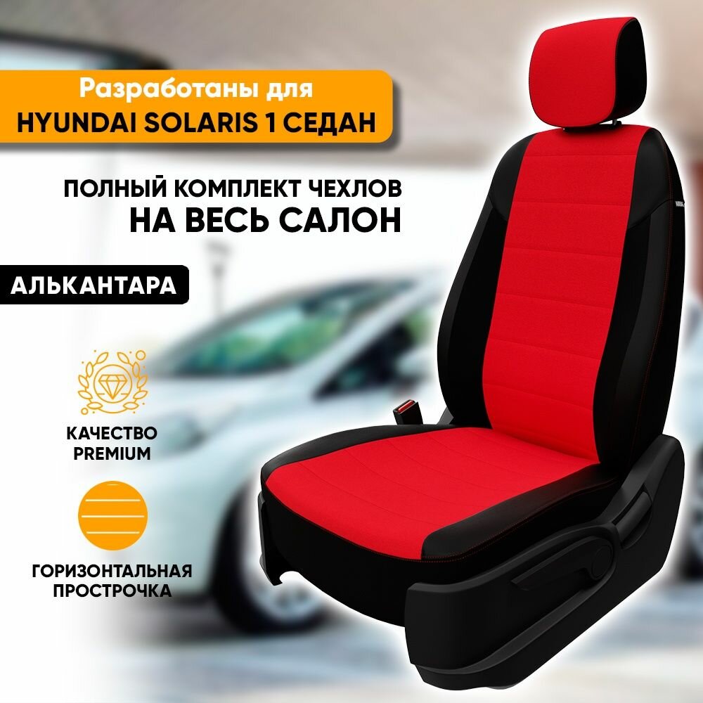 Чехлы для автомобильных сидений Hyundai Solaris 1 / Хендай Солярис 1 (2010-2017) седан из алькантары, цвет черный + красный, задняя спинка раздельная 40/60 (комплект авточехлов): сравнение цен, характеристики, фото, актуальное наличие и цены.