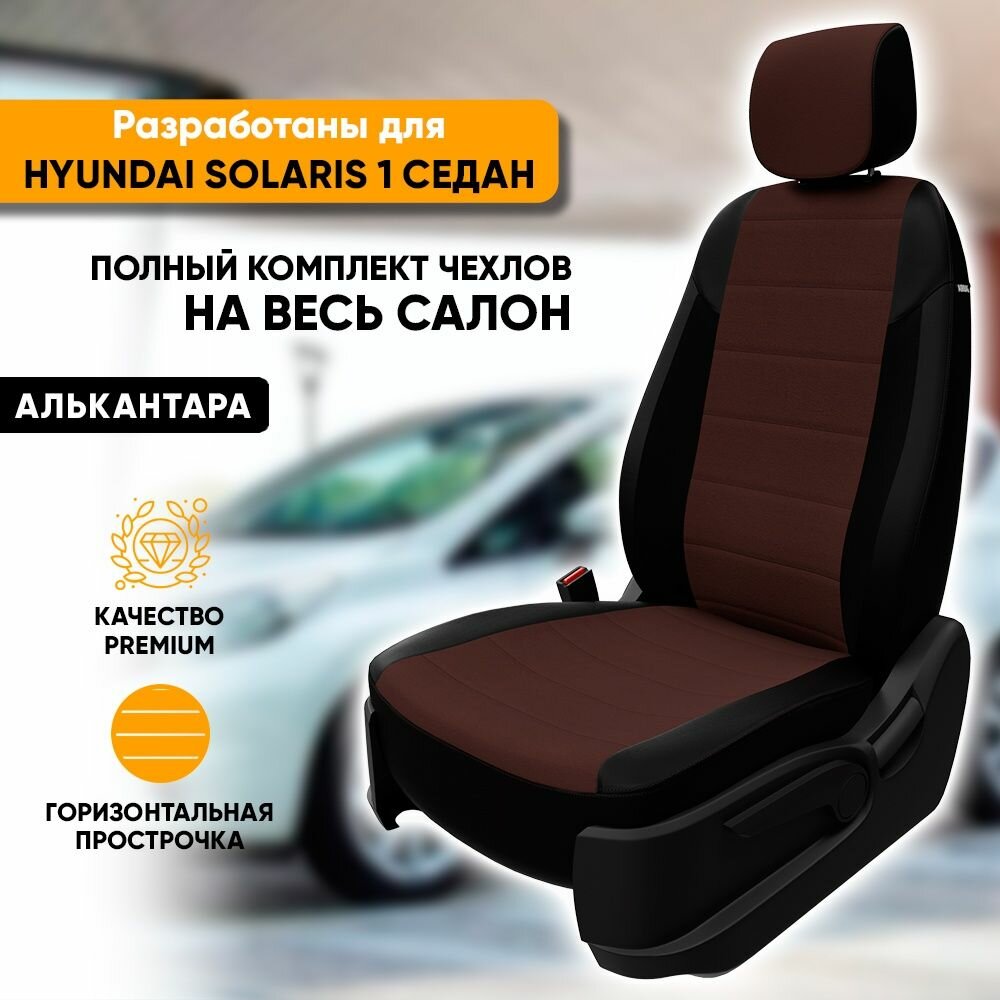 Чехлы для автомобильных сидений Hyundai Solaris 1 / Хендай Солярис 1 (2010-2017) седан из алькантары, цвет черный + шоколад, задняя спинка раздельная 40/60 (комплект авточехлов): сравнение цен, характеристики, фото, актуальное наличие и цены.