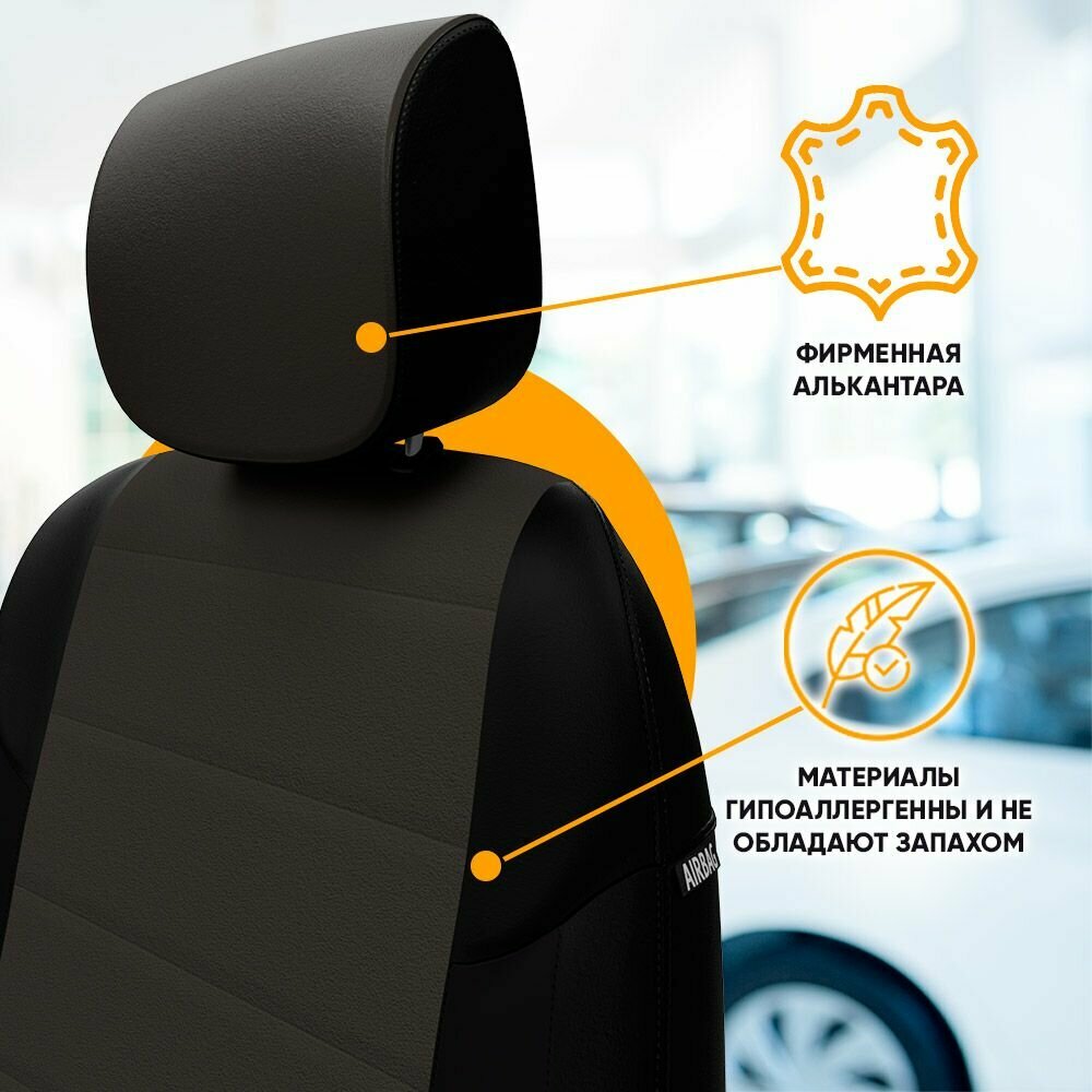 Чехлы для автомобильных сидений Hyundai Solaris 1 / Хендай Солярис 1 (2010-2017) седан из алькантары, цвет черный + темно-серый, задняя спинка раздельная 40/60 (комплект авточехлов)