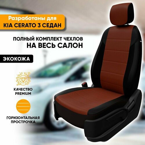 Чехлы для автомобильных сидений Kia Cerato 3 / Киа Церато 3 (2013-2019) седан из экокожи, цвет черный + темно-коричневый, задняя спинка раздельная 40/60 (комплект авточехлов): сравнение цен, характеристики, фото, актуальное наличие и цены.