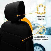 Чехлы на сиденья изготовлены из фирменной экокожи "Oregon". В настоящее время это самый популярный материал для изготовления авточехлов, так как экокожа обладает целым рядом неоспоримых преимуществ:
