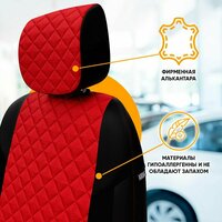 Чехлы для автомобильных сидений Kia Rio 4 / Киа Рио 4 (2017-наст. время) седан из алькантары «Ромб», цвет черный + красный, задняя спинка раздельная 40/60 (комплект авточехлов)