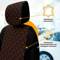 Чехлы для автомобильных сидений Kia Rio 4 / Киа Рио 4 (2017-наст. время) седан из алькантары «Ромб», цвет черный + шоколад, задняя спинка раздельная 40/60 (комплект авточехлов): сравнение цен, характеристики, фото, актуальное наличие и цены.