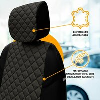 Чехлы для автомобильных сидений Kia Rio 4 / Киа Рио 4 (2017-наст. время) седан из алькантары «Ромб», цвет черный + темно-серый, задняя спинка раздельная 40/60 (комплект авточехлов): сравнение цен, характеристики, фото, актуальное наличие и цены.