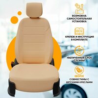 Чехлы для автомобильных сидений Lada Granta Cross / Лада Гранта Кросс (2018-наст. время) из экокожи, цвет бежевый, задняя спинка раздельная 40/60 (комплект авточехлов на весь салон): сравнение цен, характеристики, фото, актуальное наличие и цены.