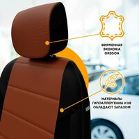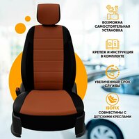 Чехлы для автомобильных сидений Lada Granta Cross / Лада Гранта Кросс (2018-наст. время) из экокожи, цвет черный + коричневый, задняя спинка раздельная 40/60 (комплект авточехлов)