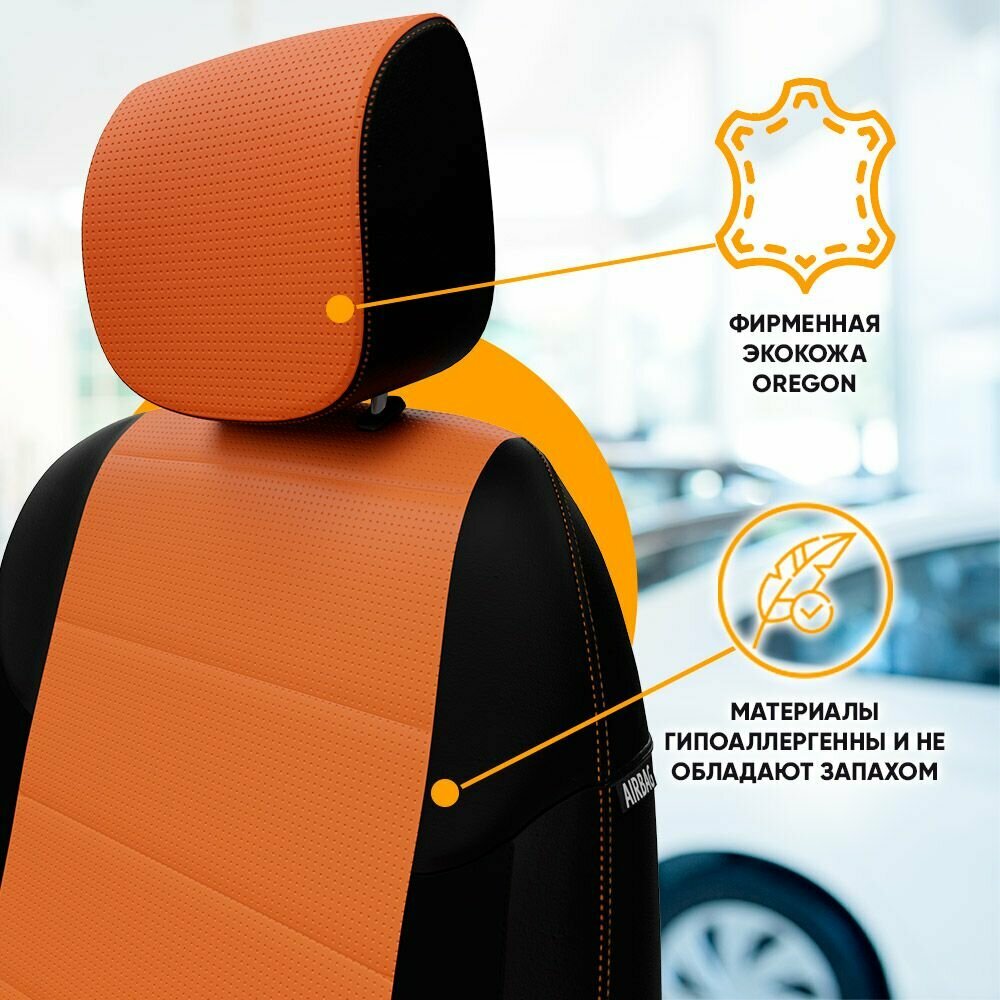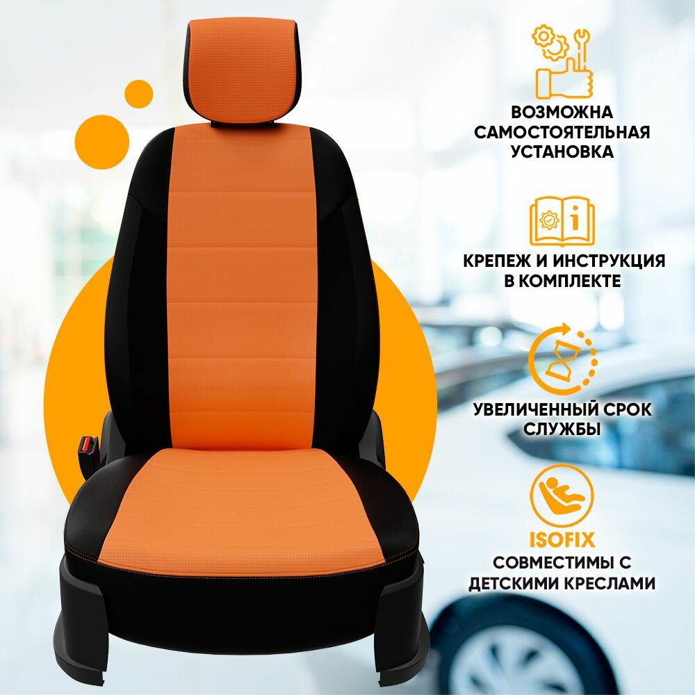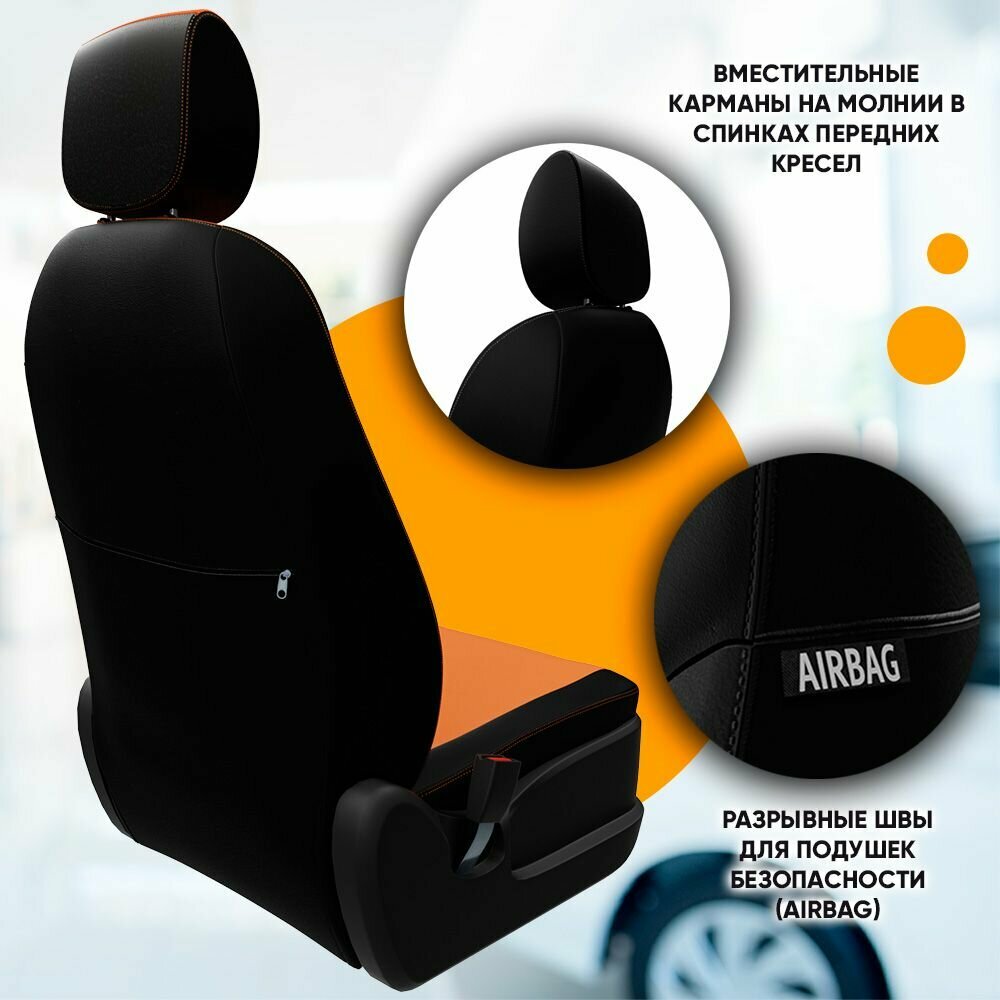 Чехлы для автомобильных сидений Lada Granta Cross / Лада Гранта Кросс (2018-наст. время) из экокожи, цвет черный + оранжевый, задняя спинка раздельная 40/60 (комплект авточехлов)