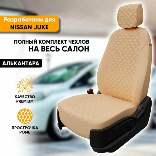 Чехлы для автомобильных сидений Nissan Juke / Ниссан Джук (2010-наст. время) из алькантары «Ромб», цвет бежевый, задняя спинка раздельная 40/60 (комплект авточехлов на весь салон): сравнение цен, характеристики, фото, актуальное наличие и цены.