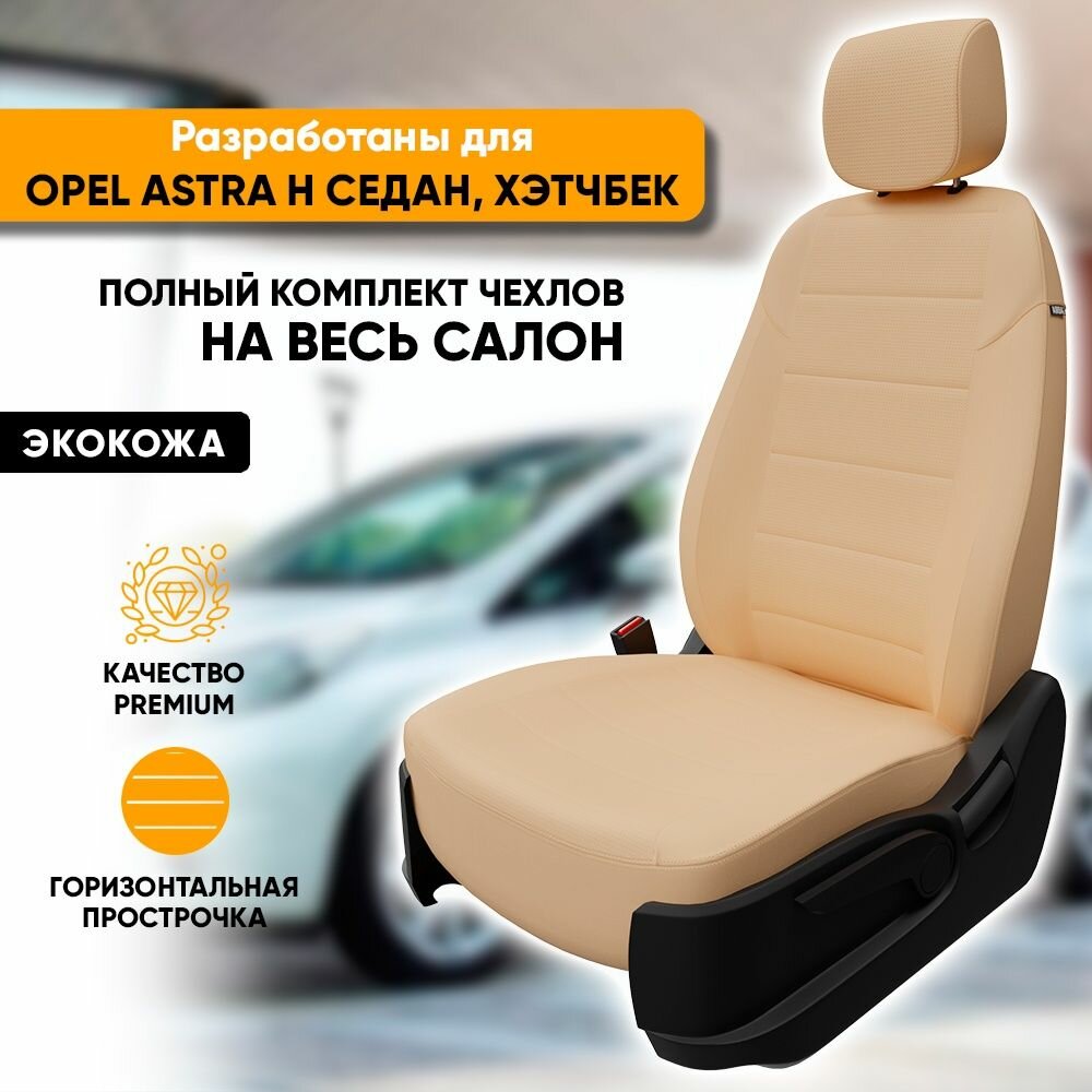 Чехлы для автомобильных сидений Opel Astra H / Опель Астра Н (2004-2014) седан, хэтчбек из экокожи, цвет бежевый, задняя спинка раздельная 40/60 (комплект авточехлов на весь салон): сравнение цен, характеристики, фото, актуальное наличие и цены.