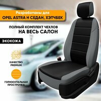Чехлы для автомобильных сидений Opel Astra H / Опель Астра Н (2004-2014) седан, хэтчбек из экокожи, цвет серый + черный, задняя спинка раздельная 40/60 (комплект авточехлов): сравнение цен, характеристики, фото, актуальное наличие и цены.