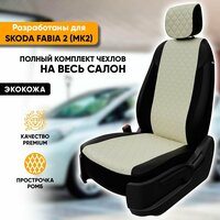 Чехлы для автомобильных сидений Skoda Fabia 2 (MK2) / Шкода Фабиа 2 (МК2) (2007-2015) из экокожи «Ромб», цвет черный + белый, задняя спинка раздельная 40/60 (комплект авточехлов): сравнение цен, характеристики, фото, актуальное наличие и цены.