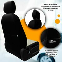 Универсальные авточехлы из экокожи с боковыми поддержками / автомобильные чехлы из экокожи черно-серые