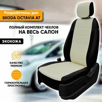 Чехлы для автомобильных сидений Skoda Octavia A7 / Шкода Октавия А7 (2013-2020) из экокожи, цвет черный + белый, с задним подлокотником (комплект модельных авточехлов на весь салон): сравнение цен, характеристики, фото, актуальное наличие и цены.