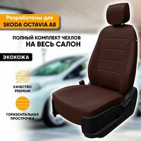 Модельные чехлы на сиденья Skoda Octavia A8 разработаны индивидуально по лекалам данной марки и модели авто. Они идеально садятся на сиденья: плотно облегают заводскую обивку, точно повторяя контуры кресел. На чехлах предусмотрены специальные разрывные швы и карманы для подушек безопасности. После установки автомобильных чехлов будет сохранен доступ к системе ISOFIX для размещения детских кресел. На спинках передних кресел в чехлах предусмотрены карманы на молнии.