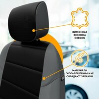 Чехлы на сиденья изготовлены из фирменной экокожи "Oregon". В настоящее время это самый популярный материал для изготовления авточехлов, так как экокожа обладает целым рядом неоспоримых преимуществ: