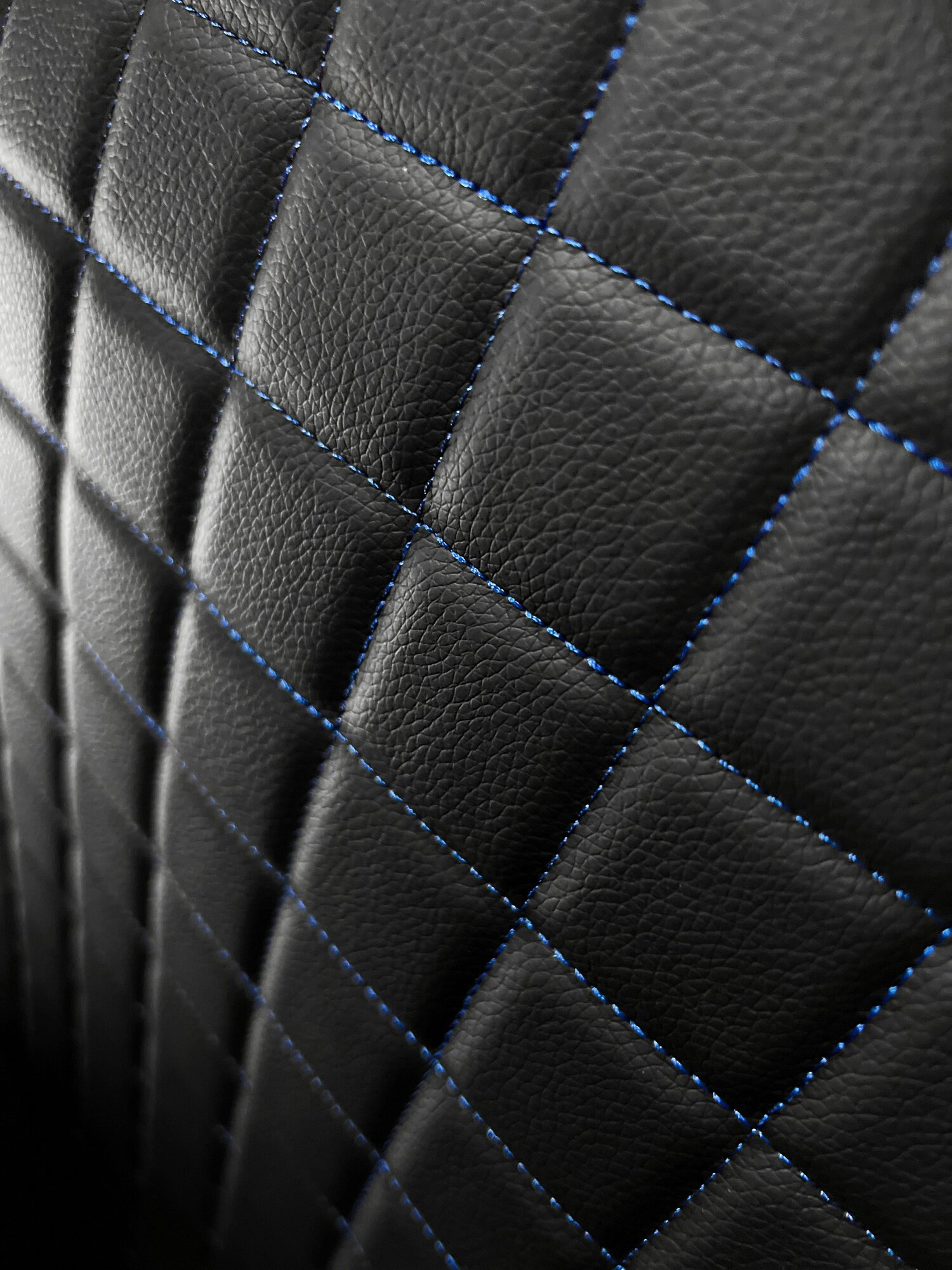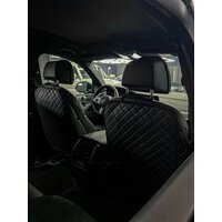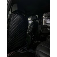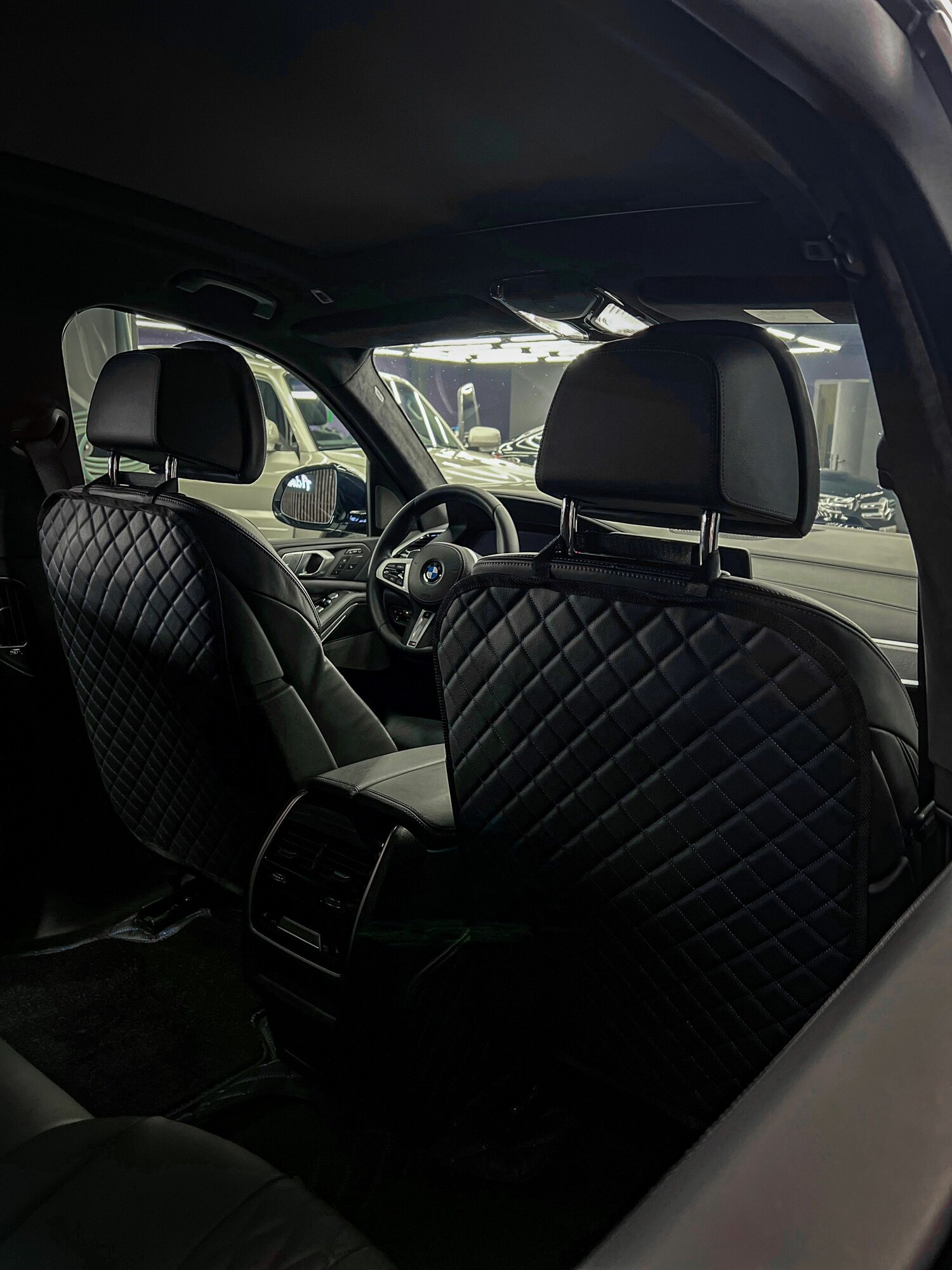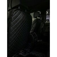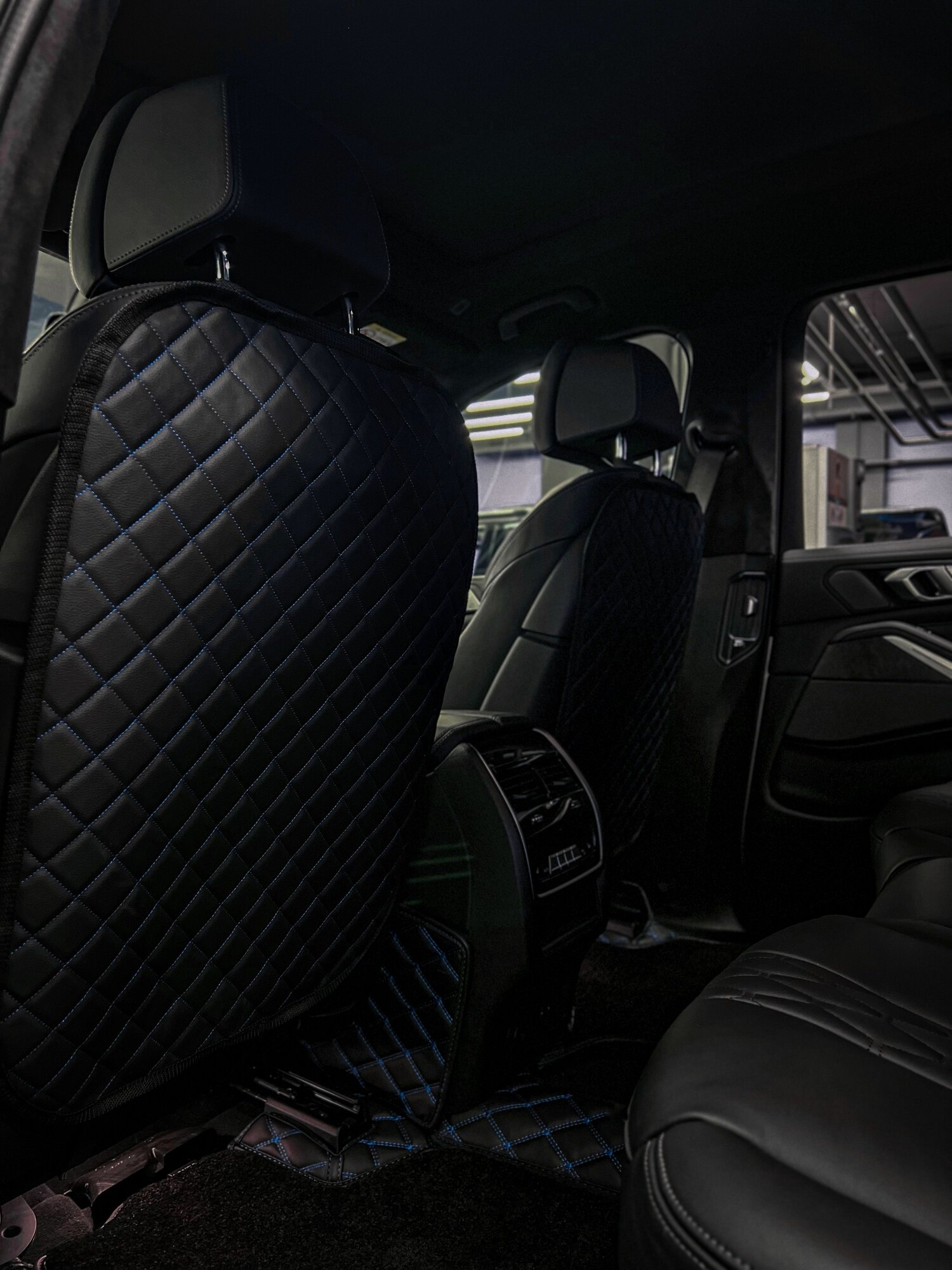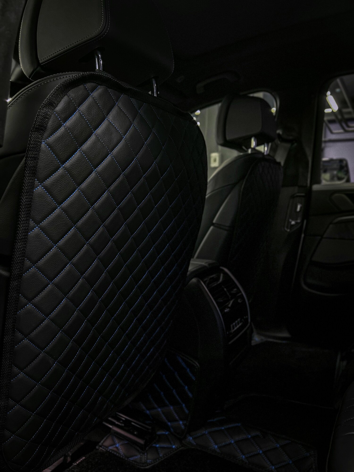 Чехлы для автомобильных сидений универсальные из экокожи , Защитная накидка на спинку переднего кресла авто от следов детской обуви , Незапинайка с синей строчкой