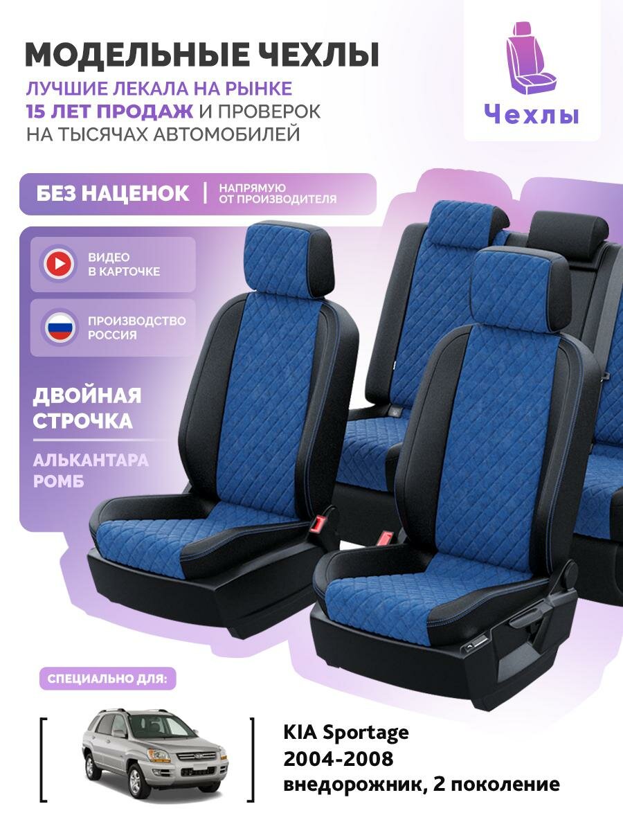 Чехлы для KIA Sportage 2 2004-2008 Чехлы. ру Алькантара с ромбом Черный Синий 2 строчки 5341AV115FT2: сравнение цен, характеристики, фото, актуальное наличие и цены.