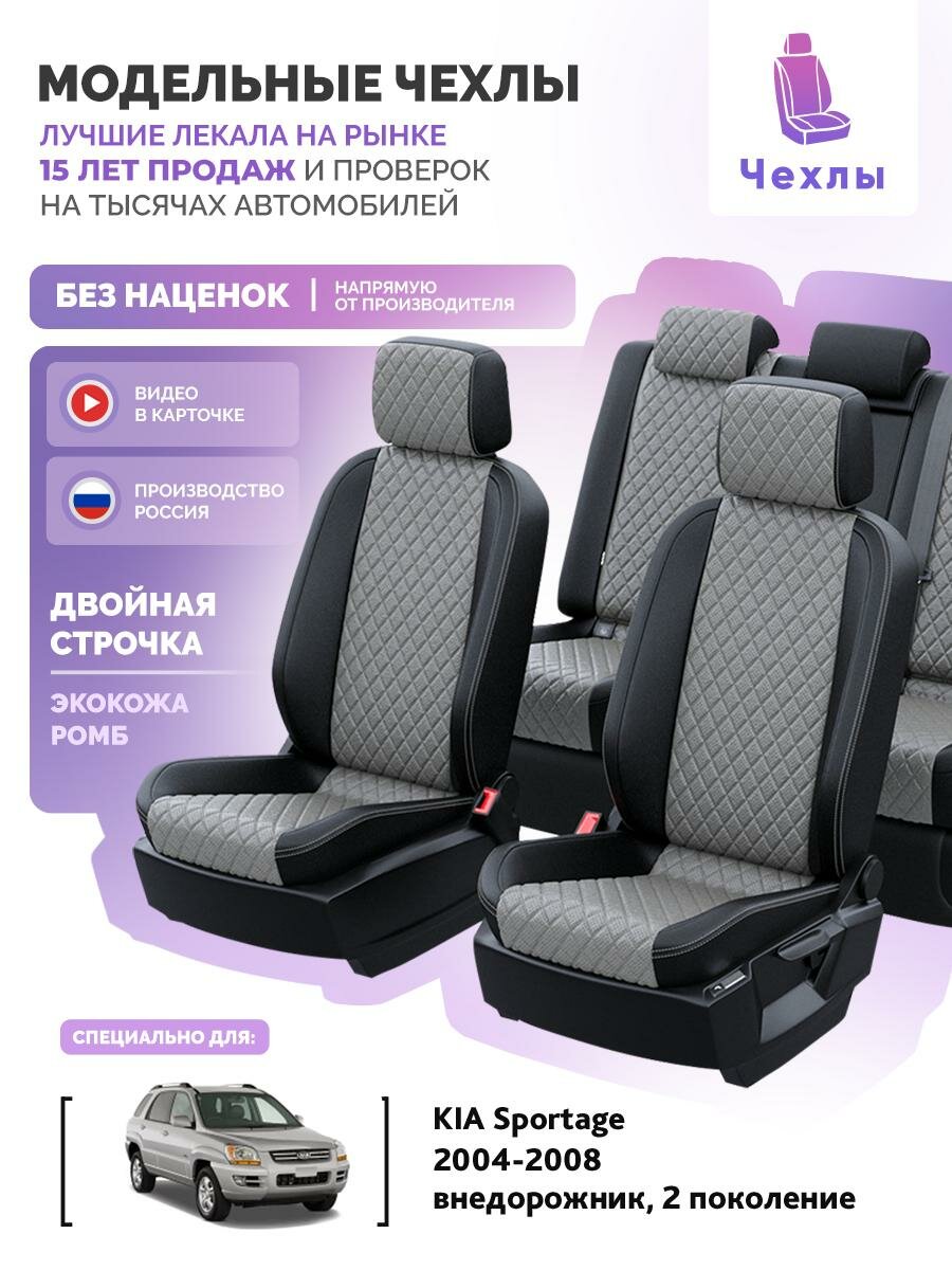 Чехлы для KIA Sportage 2 2004-2008 Чехлы. ру Экокожа с ромбом Черный Серый 2 строчки 5341AV153FT2: сравнение цен, характеристики, фото, актуальное наличие и цены.