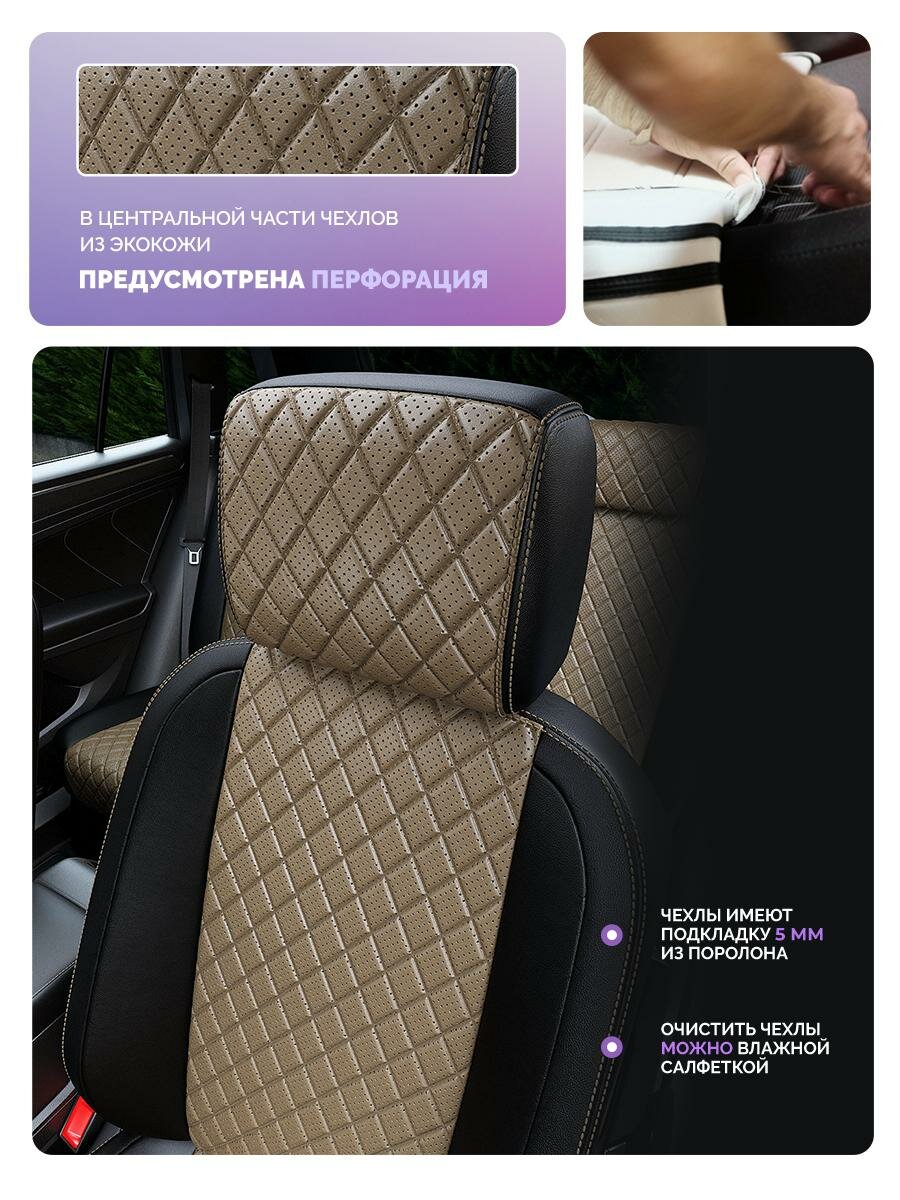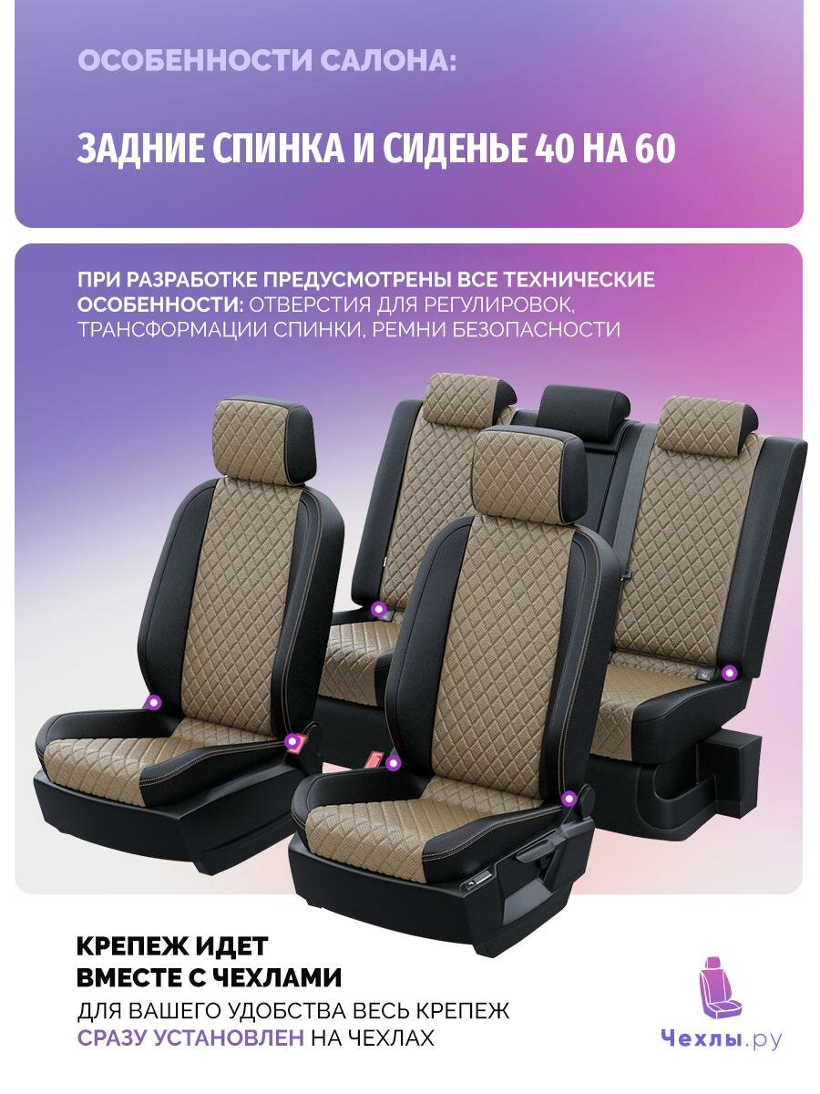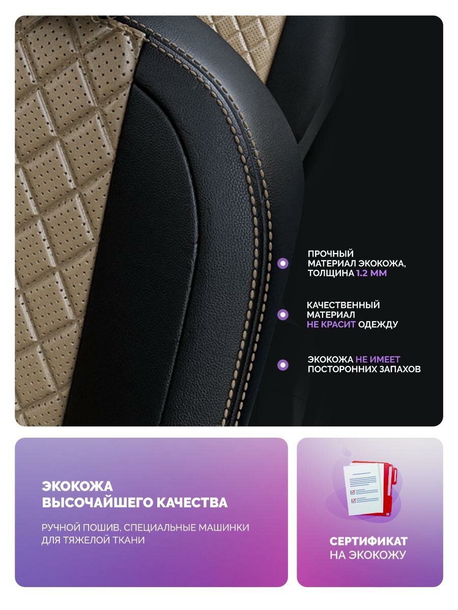 Купить Чехлы для KIA Sportage 2 2004-2008 Чехлы. ру Экокожа с ромбом Черный Темно-Бежевый 2 строчки 5341AV151FT2 с доставкой по всей России.
