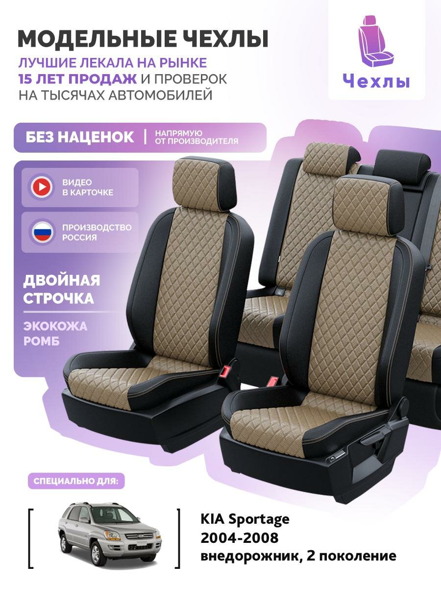 Чехлы для KIA Sportage 2 2004-2008 Чехлы. ру Экокожа с ромбом Черный Темно-Бежевый 2 строчки 5341AV151FT2: сравнение цен, характеристики, фото, актуальное наличие и цены.