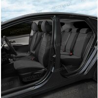 Авточехлы из экокожи Аригон со вставкой из велюра по центру сидений для автомобиля KIA Sportage 3 2010, 2011, 2012, 2013, 2014, 2015, 2016 года выпуска цвет черный с серым.