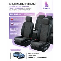 Купить Чехлы для Nissan Primera P12 3 2001-2008 Чехлы. ру Алькантара Черный Темно-Серый 2 строчки 5539AV101FT2 с доставкой по всей России.