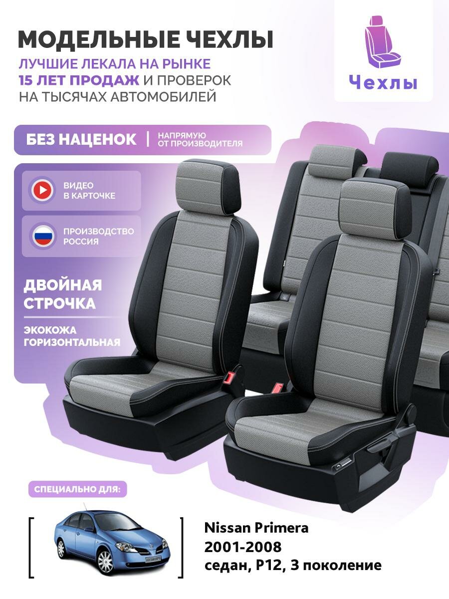 Чехлы для Nissan Primera P12 3 2001-2008 Чехлы. ру Экокожа Черный Серый 2 строчки 5539AV144FT2: сравнение цен, характеристики, фото, актуальное наличие и цены.