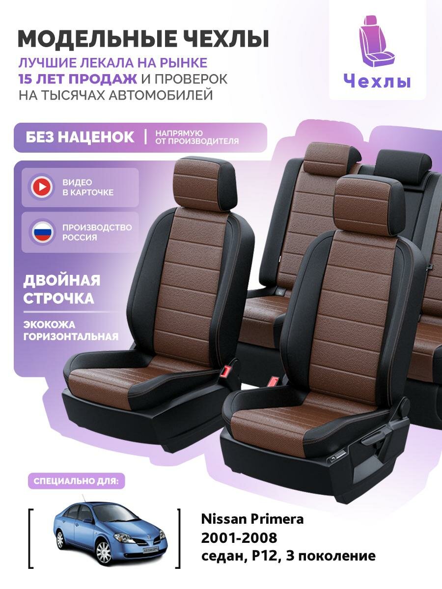 Чехлы для Nissan Primera P12 3 2001-2008 Чехлы. ру Экокожа Черный Темно-Коричневый 2 строчки 5539AV125FT2: сравнение цен, характеристики, фото, актуальное наличие и цены.