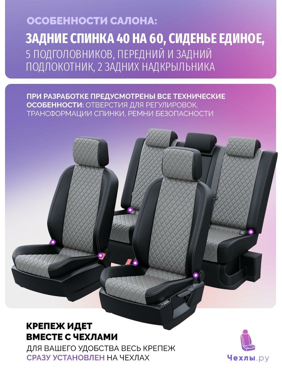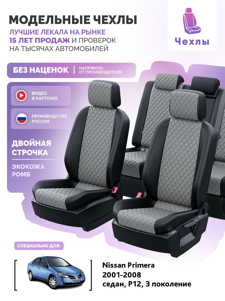 Купить Чехлы для Nissan Primera P12 3 2001-2008 Чехлы. ру Экокожа с ромбом Черный Серый 2 строчки 5539AV153FT2 с доставкой по всей России.