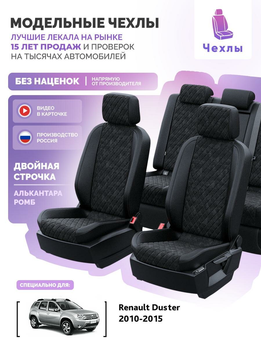 Чехлы для Renault Duster 2010-2015 Чехлы. ру Алькантара с ромбом Черный Черный 2 строчки 5625AV118FT2: сравнение цен, характеристики, фото, актуальное наличие и цены.