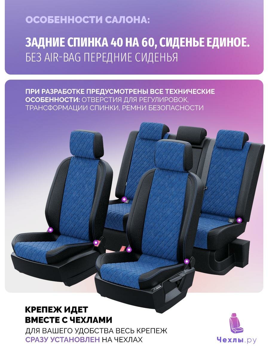 Купить Чехлы для Renault Duster 2010-2015 Чехлы. ру Алькантара с ромбом Черный Синий 2 строчки 5625AV115FT2 с доставкой по всей России.