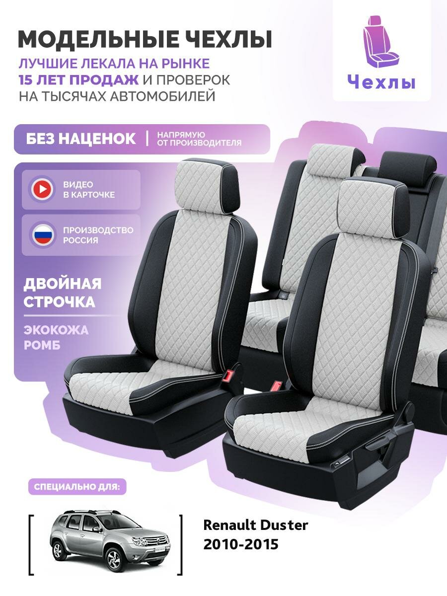 Купить Чехлы для Renault Duster 2010-2015 Чехлы. ру Экокожа с ромбом Черный Белый 2 строчки 5625AV170FT2 с доставкой по всей России.
