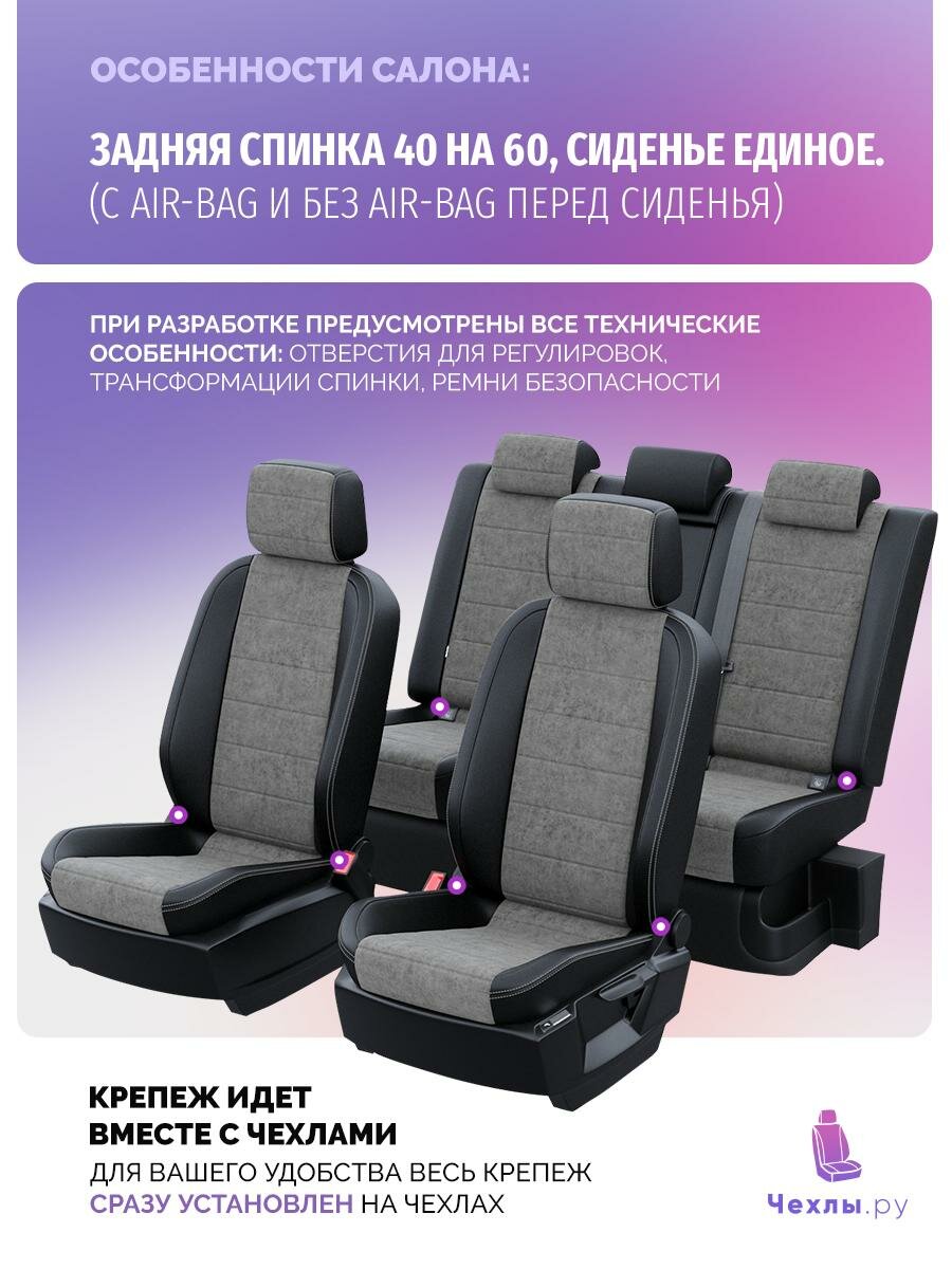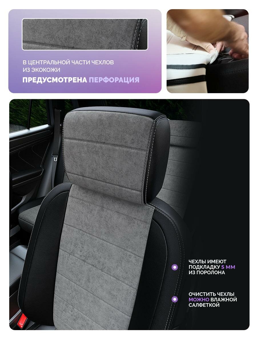 Купить Чехлы для Renault Duster 2015-2021 Чехлы. ру Алькантара Черный Серый 2 строчки 5593AV102FT2 с доставкой по всей России.