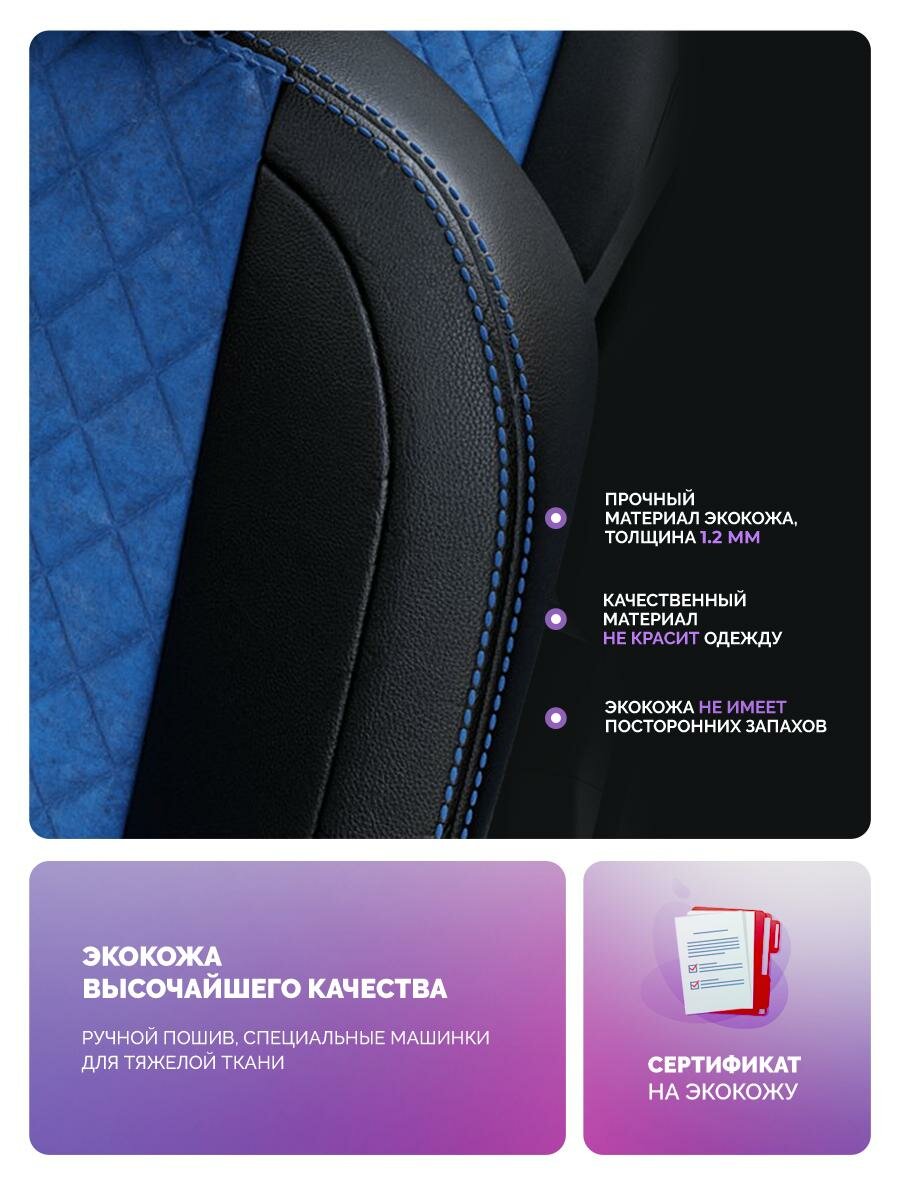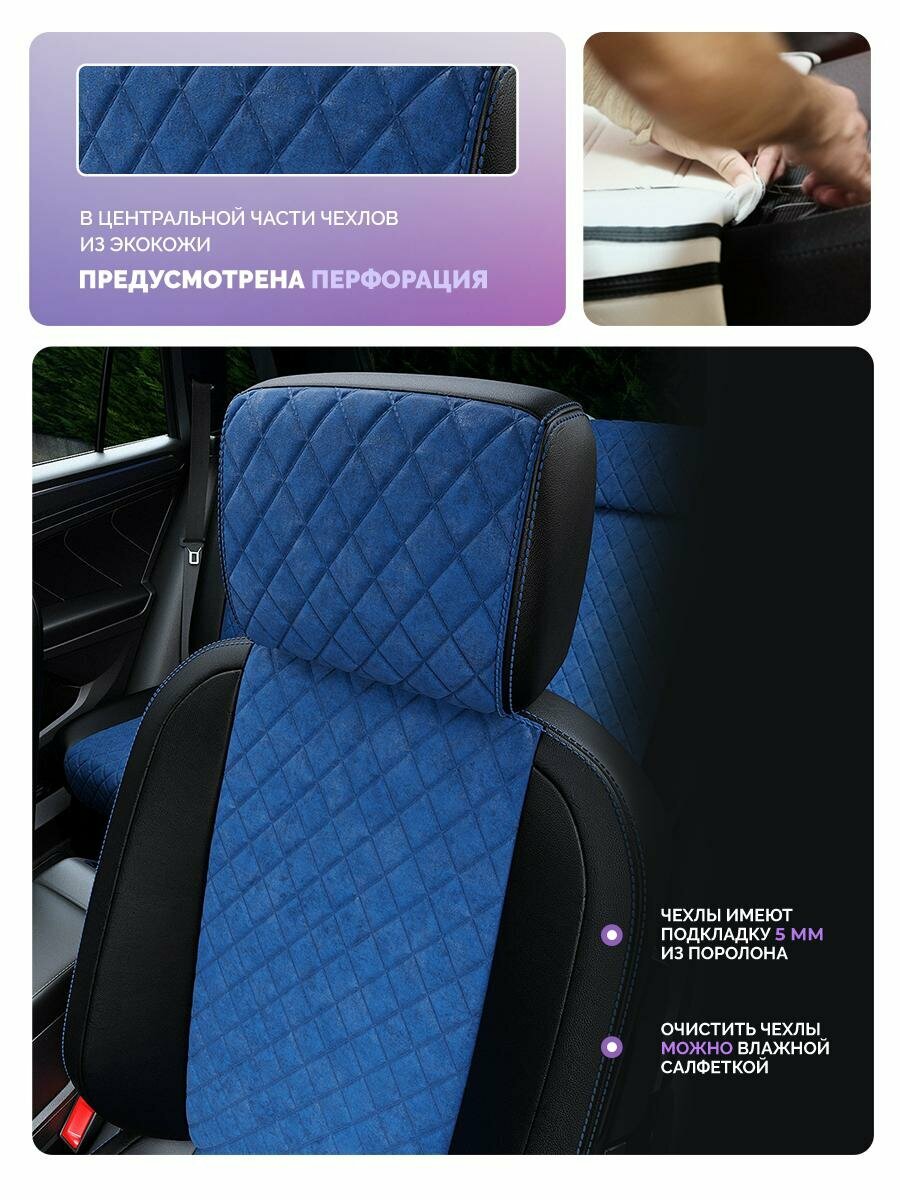 Купить Чехлы для Renault Duster 2015-2021 Чехлы. ру Алькантара с ромбом Черный Синий 2 строчки 5593AV115FT2 с доставкой по всей России.