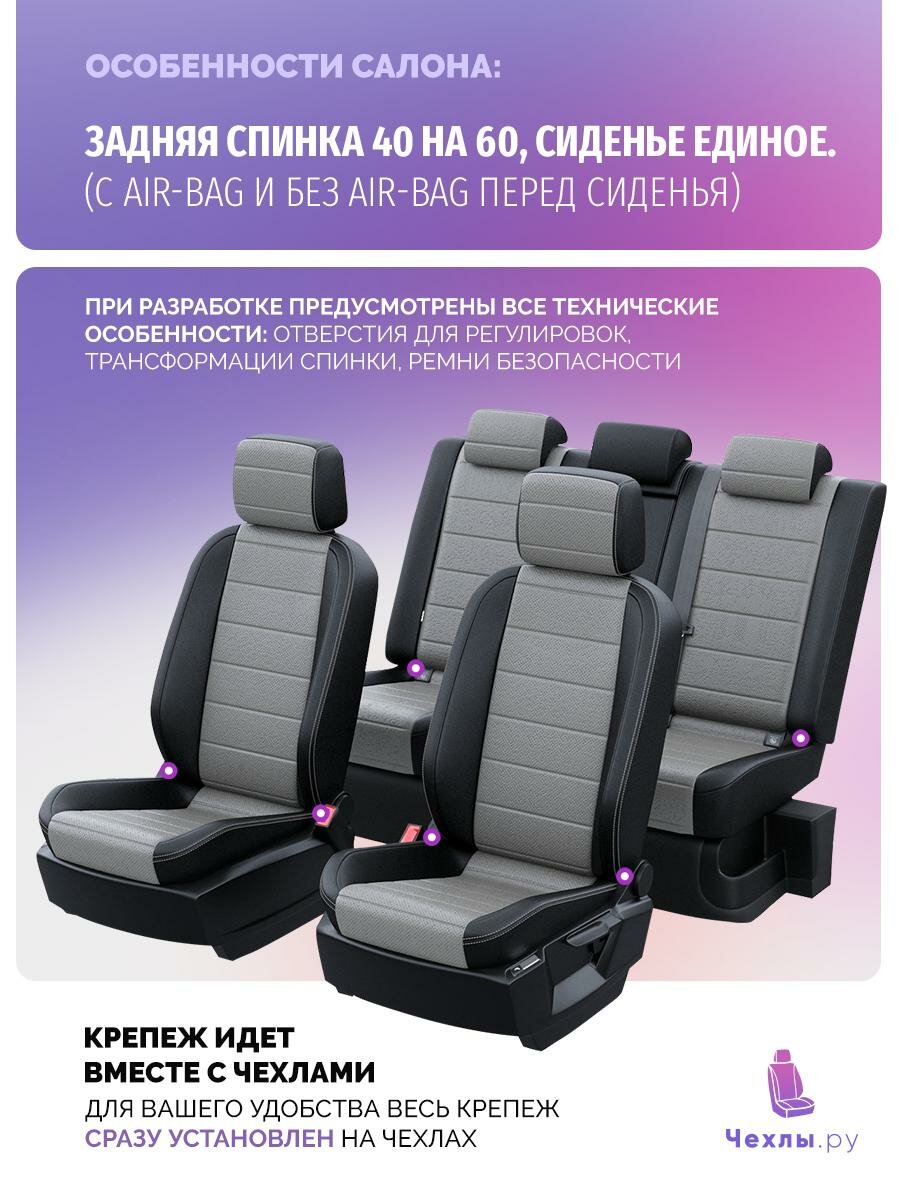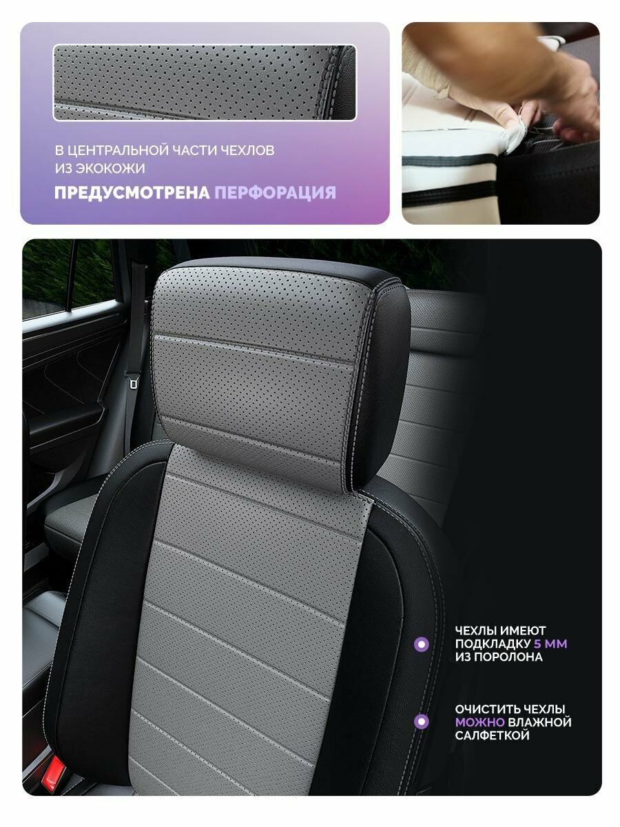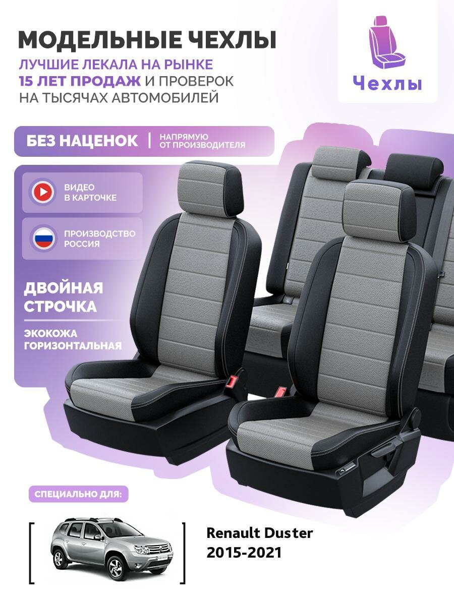 Купить Чехлы для Renault Duster 2015-2021 Чехлы. ру Экокожа Черный Серый 2 строчки 5593AV144FT2 с доставкой по всей России.