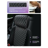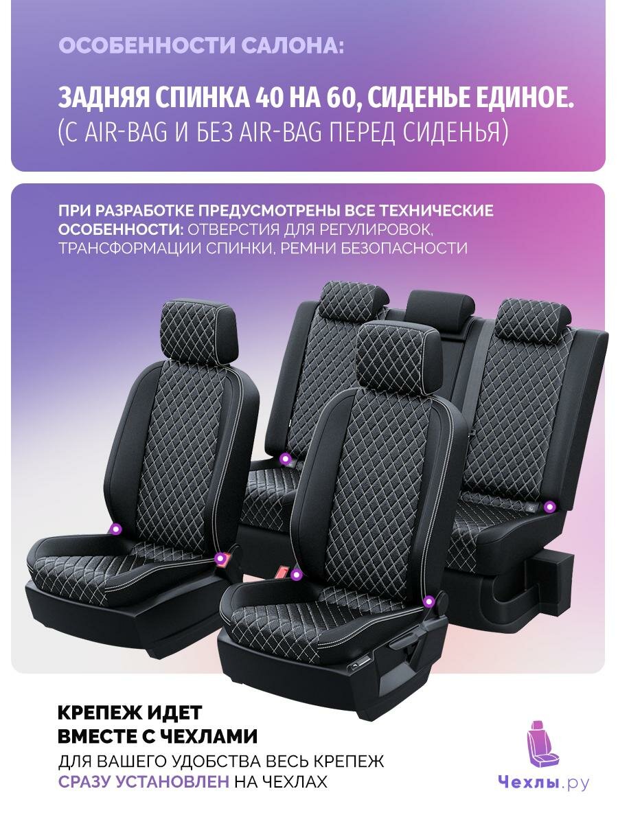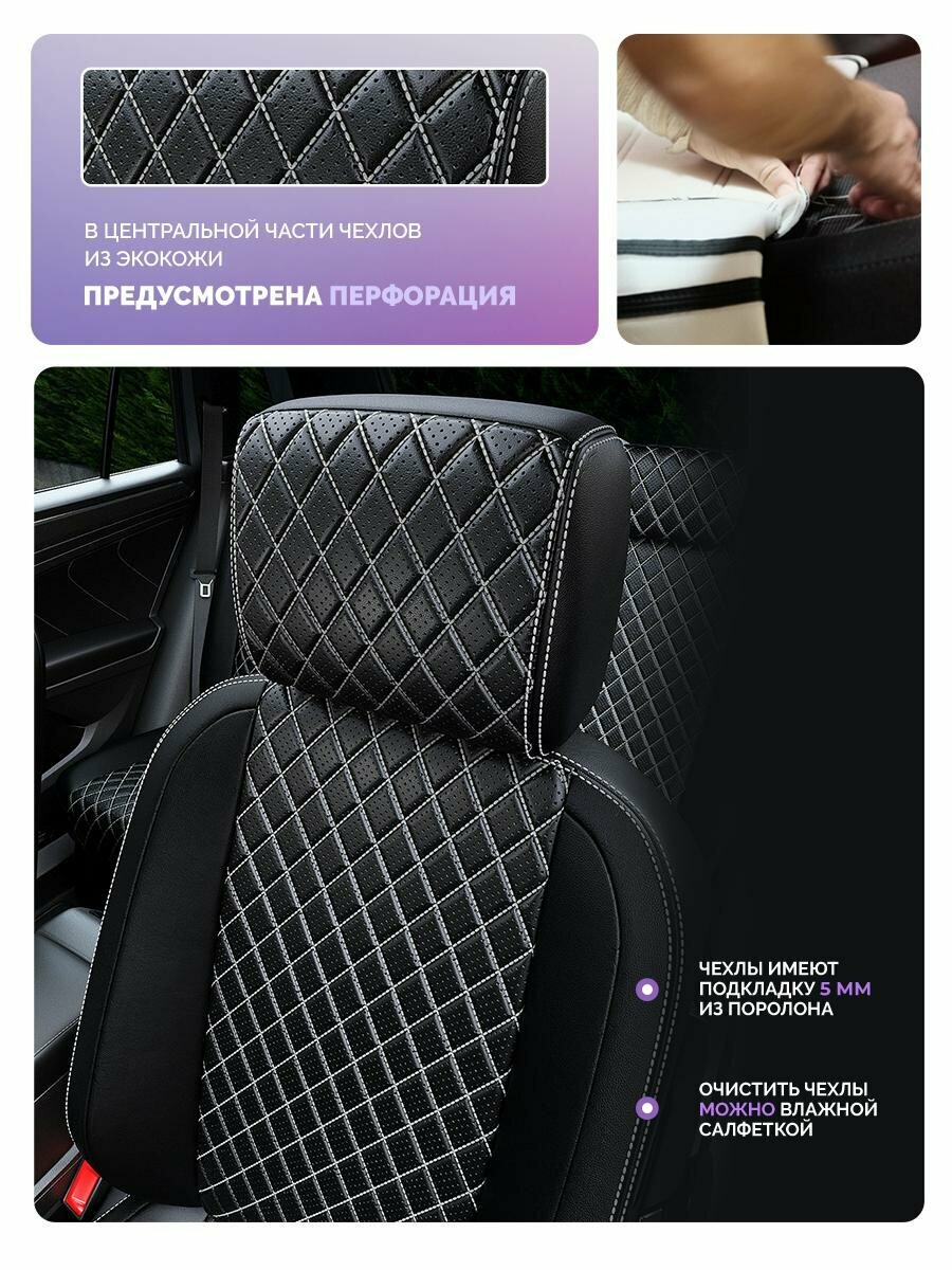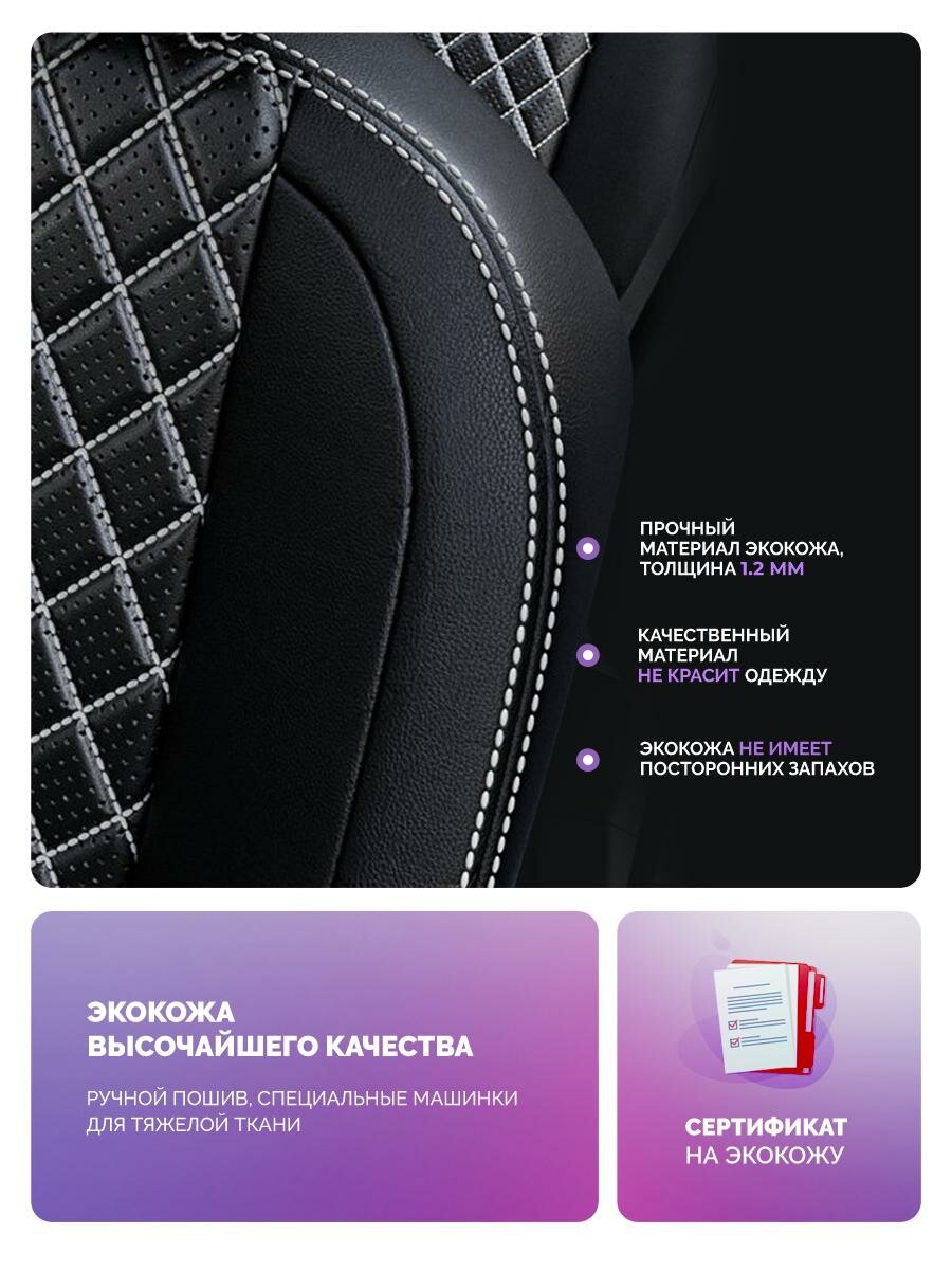 Купить Чехлы для Renault Duster 2015-2021 Чехлы. ру Экокожа с ромбом Черный Черный c белой строчкой 2 строчки 5593AV149FT2 с доставкой по всей России.