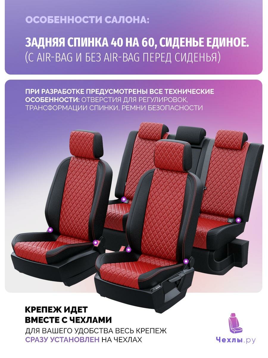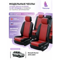 Купить Чехлы для Renault Duster 2015-2021 Чехлы. ру Экокожа с ромбом Черный Красный 2 строчки 5593AV156FT2 с доставкой по всей России.