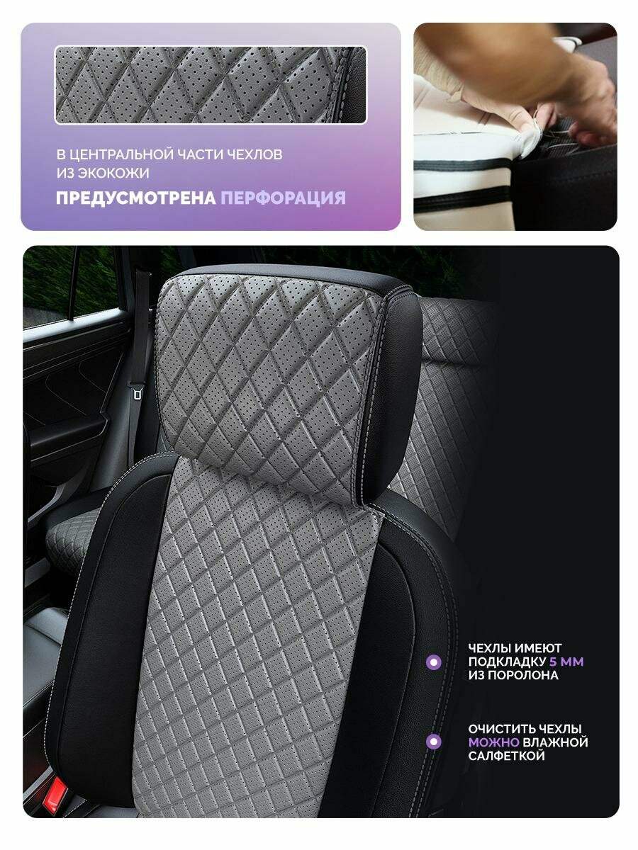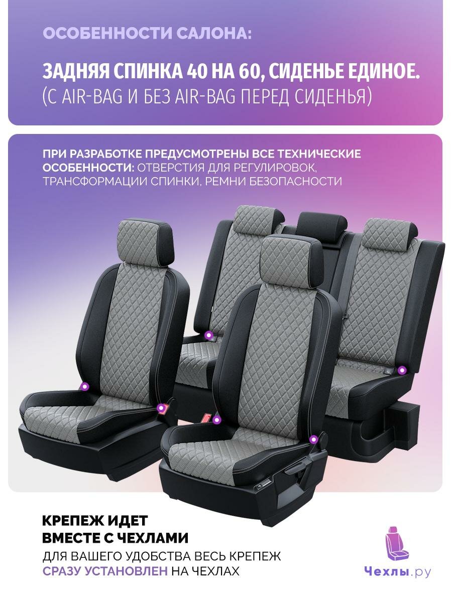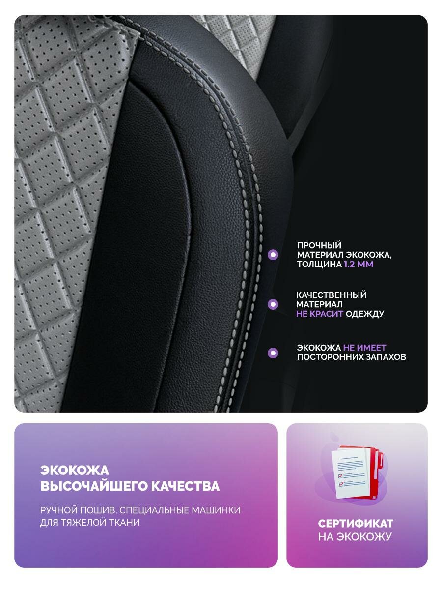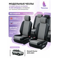 Купить Чехлы для Renault Duster 2015-2021 Чехлы. ру Экокожа с ромбом Черный Серый 2 строчки 5593AV153FT2 с доставкой по всей России.