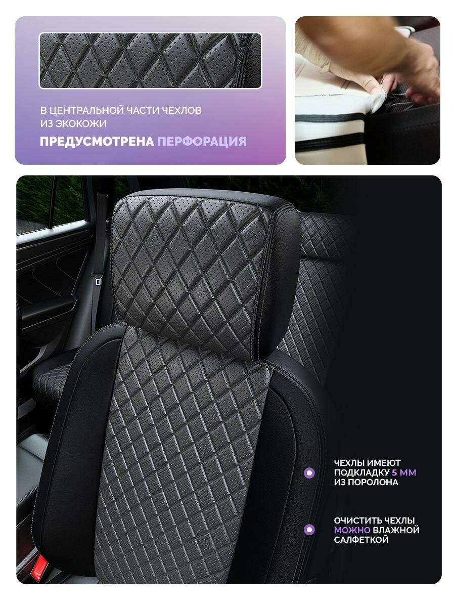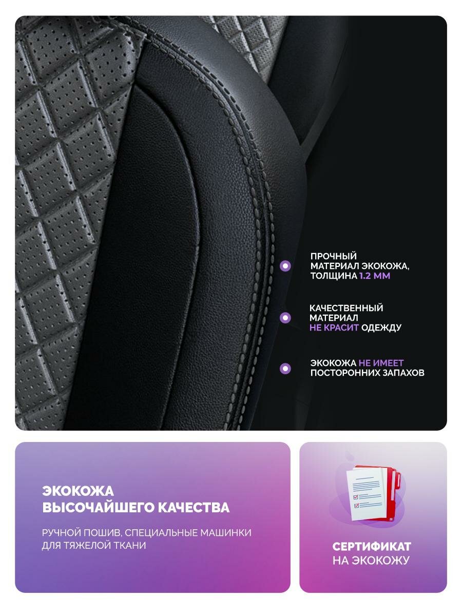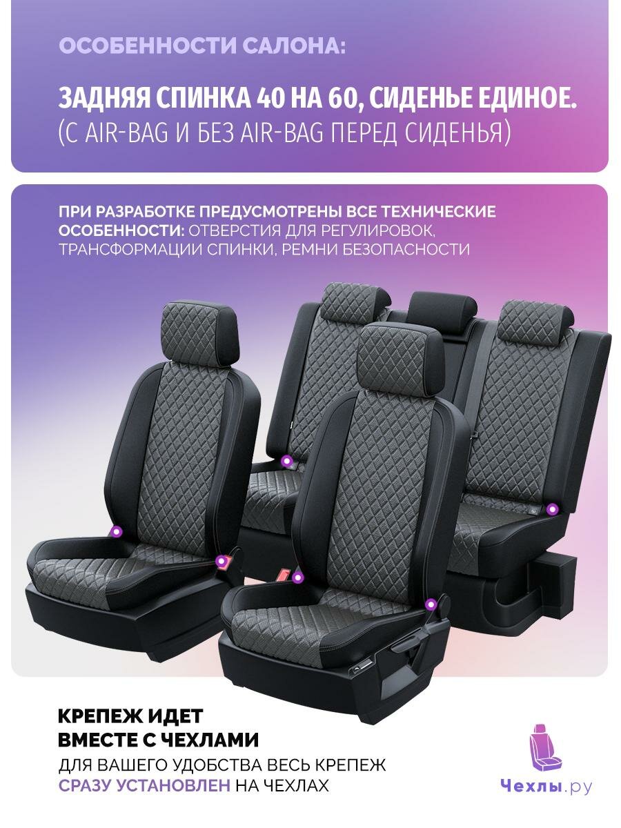 Купить Чехлы для Renault Duster 2015-2021 Чехлы. ру Экокожа с ромбом Черный Темно-Серый 2 строчки 5593AV166FT2 с доставкой по всей России.
