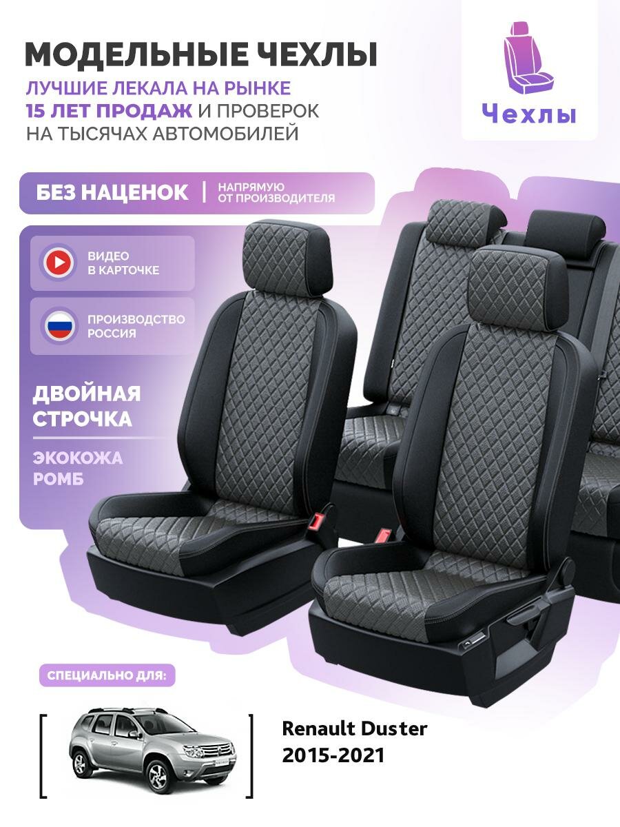 Чехлы для Renault Duster 2015-2021 Чехлы. ру Экокожа с ромбом Черный Темно-Серый 2 строчки 5593AV166FT2: сравнение цен, характеристики, фото, актуальное наличие и цены.