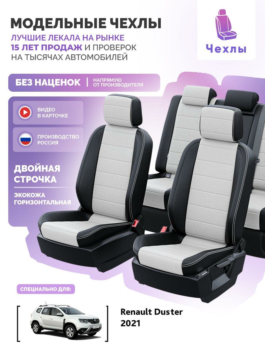 Купить Чехлы для Renault Duster 2020-2024 Чехлы. ру Экокожа Черный Белый 2 строчки 5615AV140FT2 с доставкой по всей России.