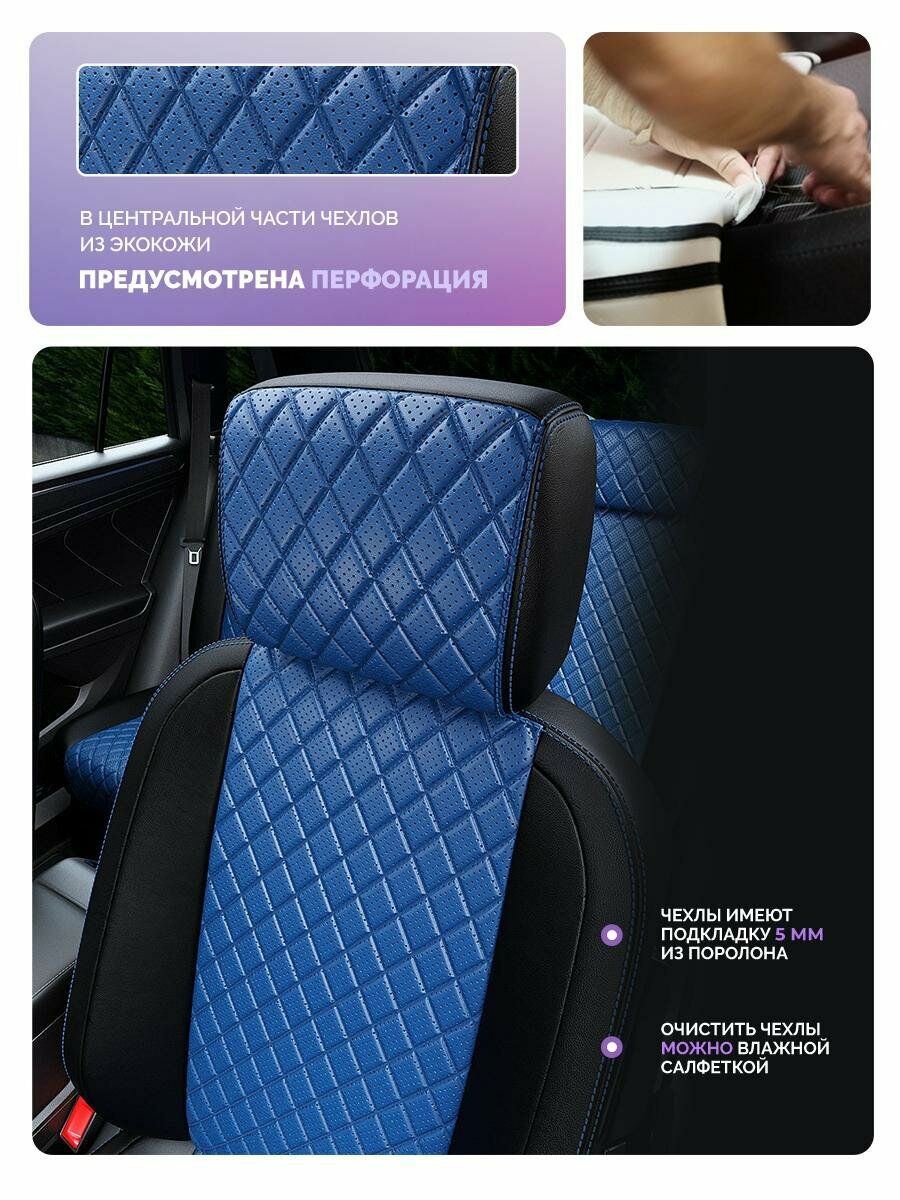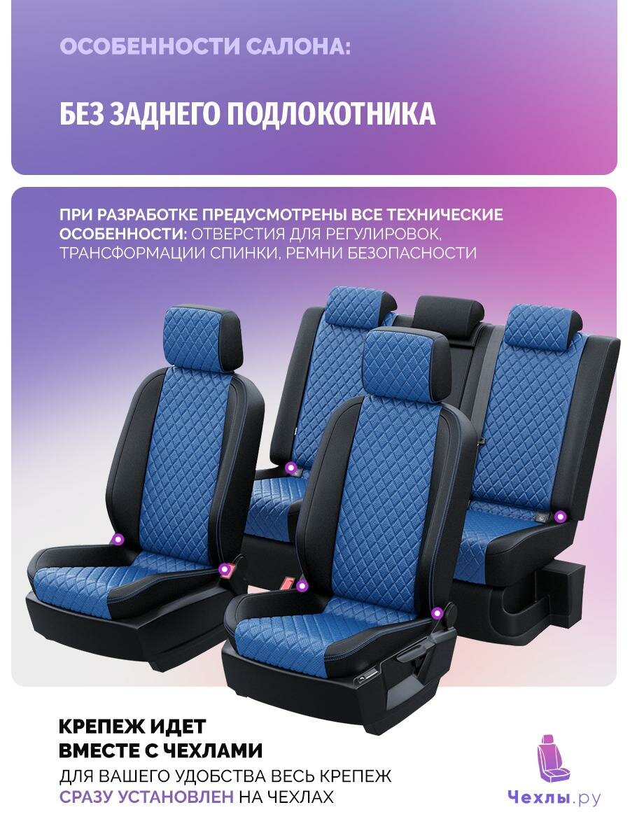 Купить Чехлы для Renault Duster 2020-2024 Чехлы. ру Экокожа с ромбом Черный Синий 2 строчки 5615AV165FT2 с доставкой по всей России.
