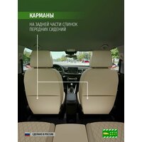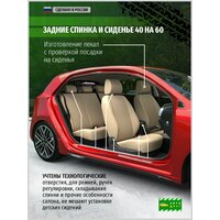 Центральная часть чехлов изготовлена из экокожи с ромбом и перфорацией бежевого цвета с перфорацией, что позволяет чехлам дышать