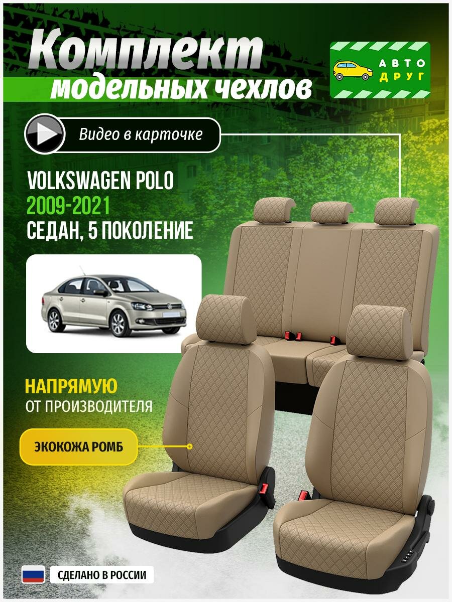 Чехлы для сидений Фольксваген Поло 5 седан 2009-2021 гв Экокожа с ромбом Бежевый и Бежевый A0782D150 Автодруг: сравнение цен, характеристики, фото, актуальное наличие и цены.